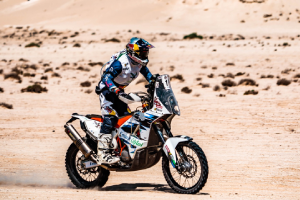 Saudi Arabia’s Ahmed Al-Jaber started the final stage with a 16-second cushion over Brett Hunt but it was the British enduro rider who managed to top the class rankings by 7min 51sec after an excellent final passage through the dunes. Several riders became stuck in the sand in the heat and the recovery crews were busy during the afternoon.